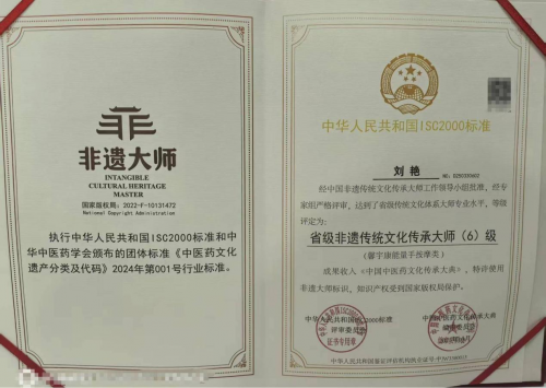 刘艳老师荣获 “非遗传承大师”荣誉称号