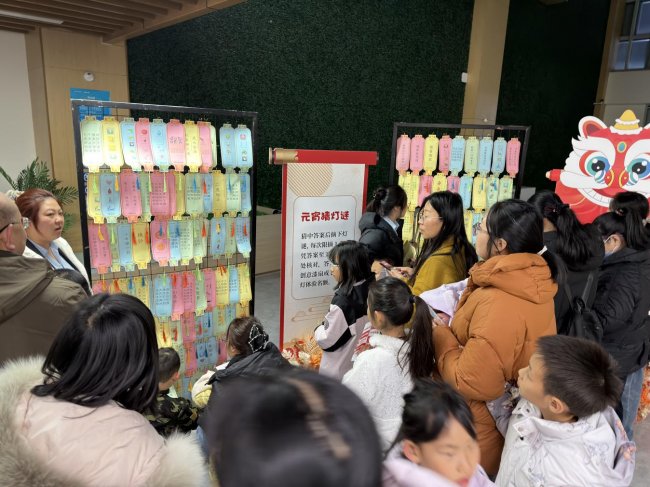 作为元宵经典环节,“元宵猜灯谜”无疑将现场气氛推向高潮。数百条涵盖诗词典故、民俗知识、非遗常识的灯谜悬挂在彩灯之下,谜面妙趣横生,谜底暗藏乾坤。参与者们驻足沉思、互相探讨、争相抢答,在益智娱乐中领略汉字之美与文化之深。